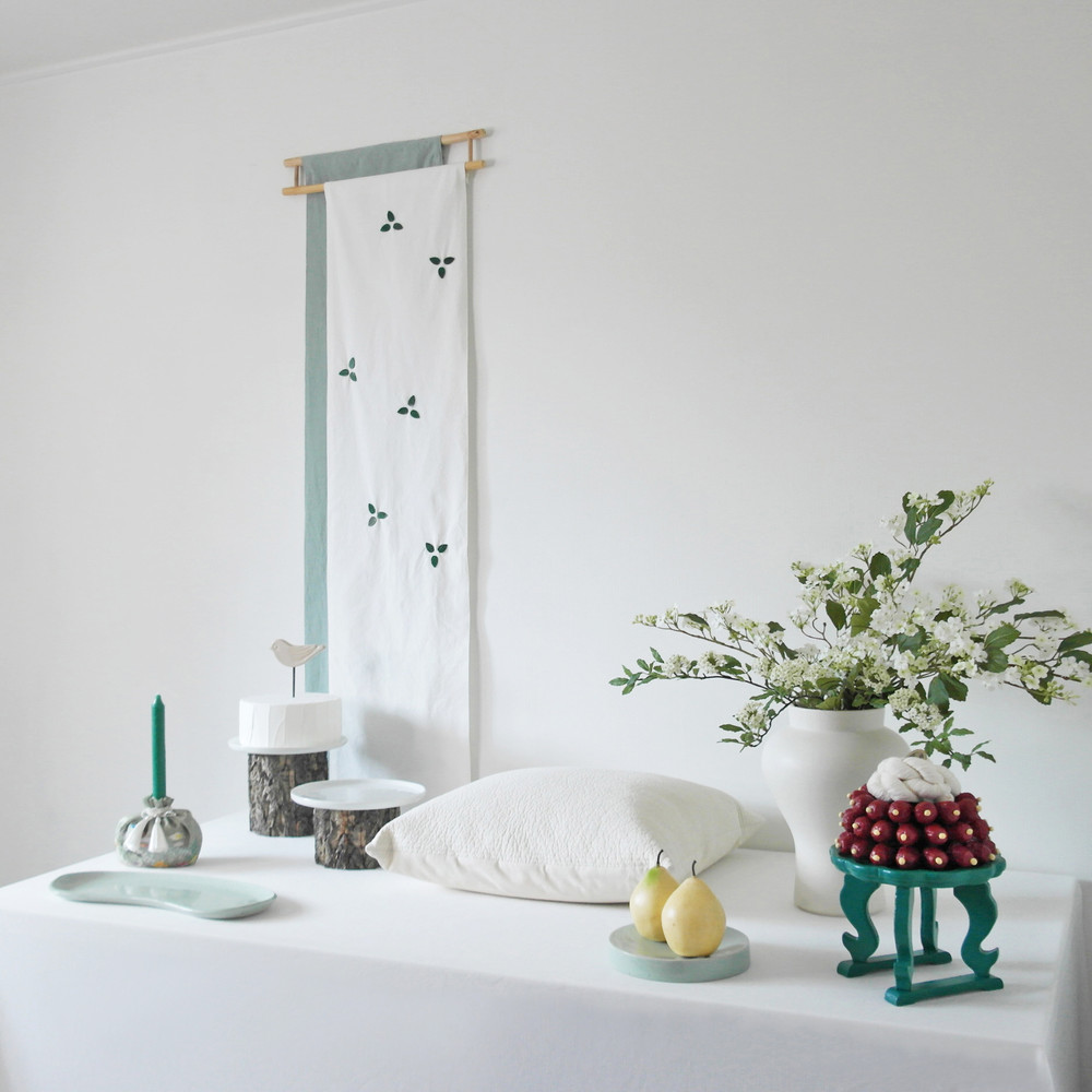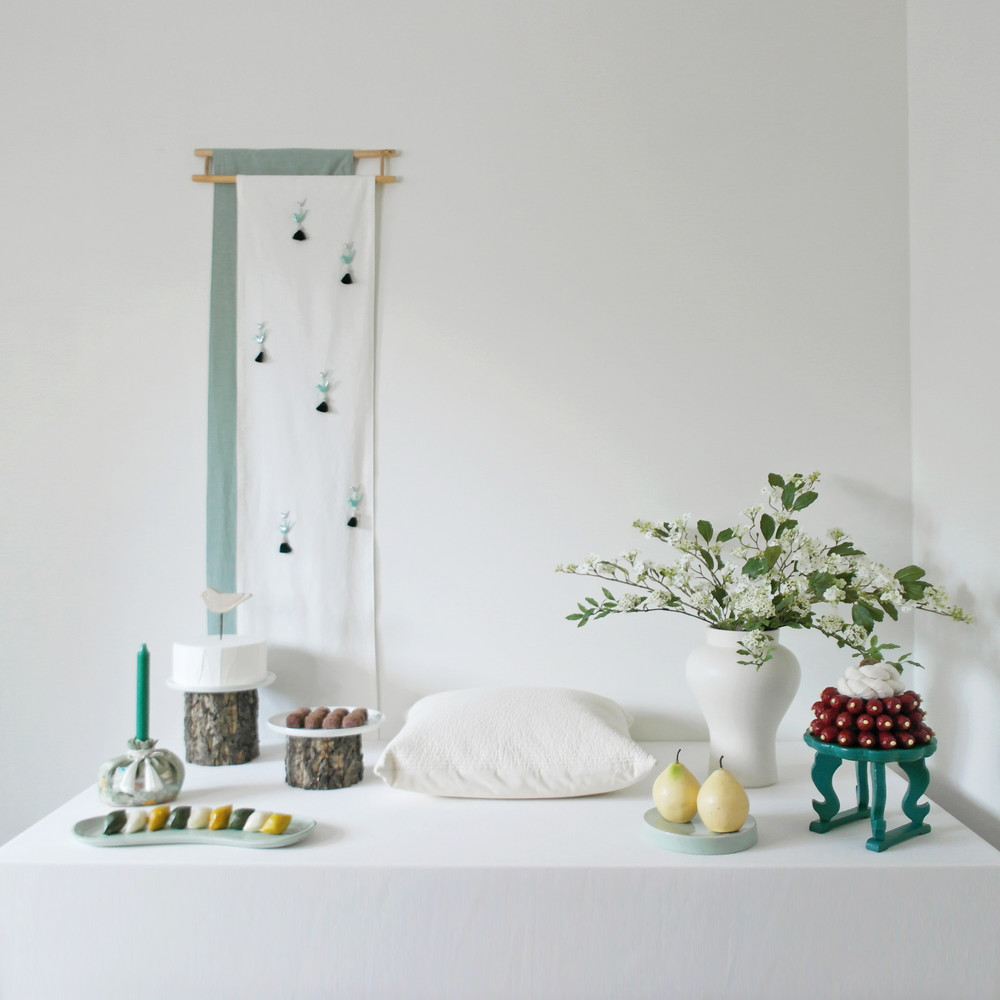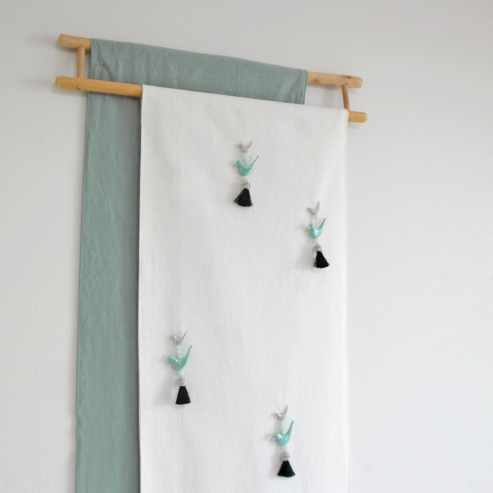 백드롭의 새Bird 디자인은 도자기로 만들어진 새 장식과 청록 태슬의 매치로 오리엔탈 무드를 자아내기에 손색 없어요.