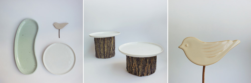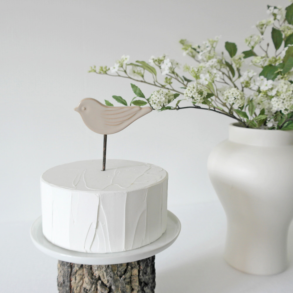 백자 접시 하나에는 클레이 케이크를 두고 Bird Pick으로 장식해주세요.