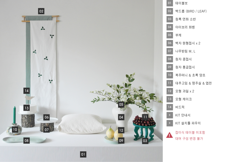 수취 당일 동봉된 체크리스트를 기준으로 소품들을 확인해주세요.