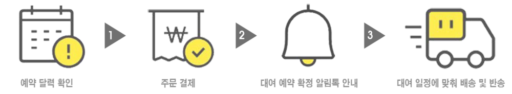 주문 확인 후 대여 일정이 안내된 ①예약확정 알림톡 을 드리며, 발송일에 배송추적이 가능한 ②발송알림 알림톡 을 드립니다.