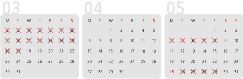 변경 시, 기존의 타대여 일정으로 인해 원하시는 날로 변경이 불가 할 수도 있습니다.