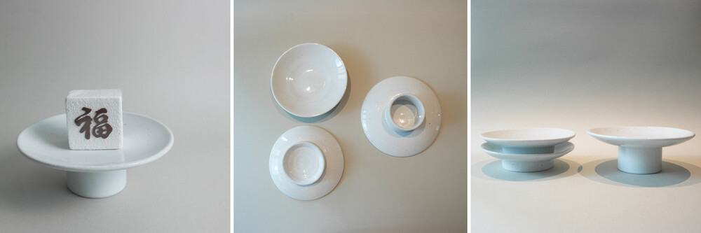 낮은 두 개의 굽접시에는 수수단이나 색송편(하양, 노랑, 초록)을 소담스럽게 올려주세요.