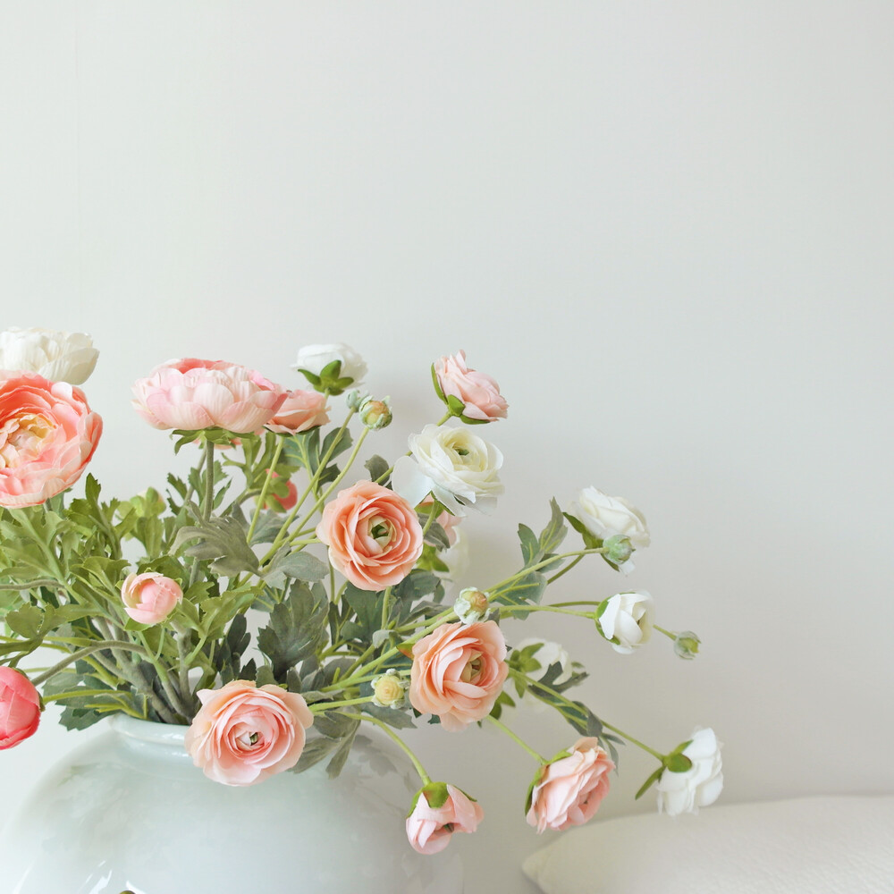 싱그러우면서도 고매한 느낌의 그리너리, 파스텔톤의 동글동글 형태마저 사랑스러운 러넌큘러스.