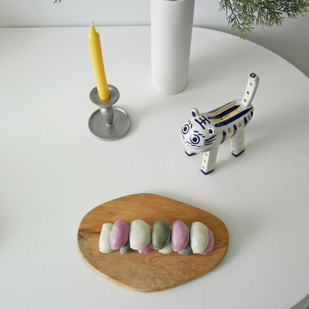 설기 한 조각, 수수경단을 담아주세요. 우드 트레이에는 꽃모양의 색송편도 참 어울릴 거예요.